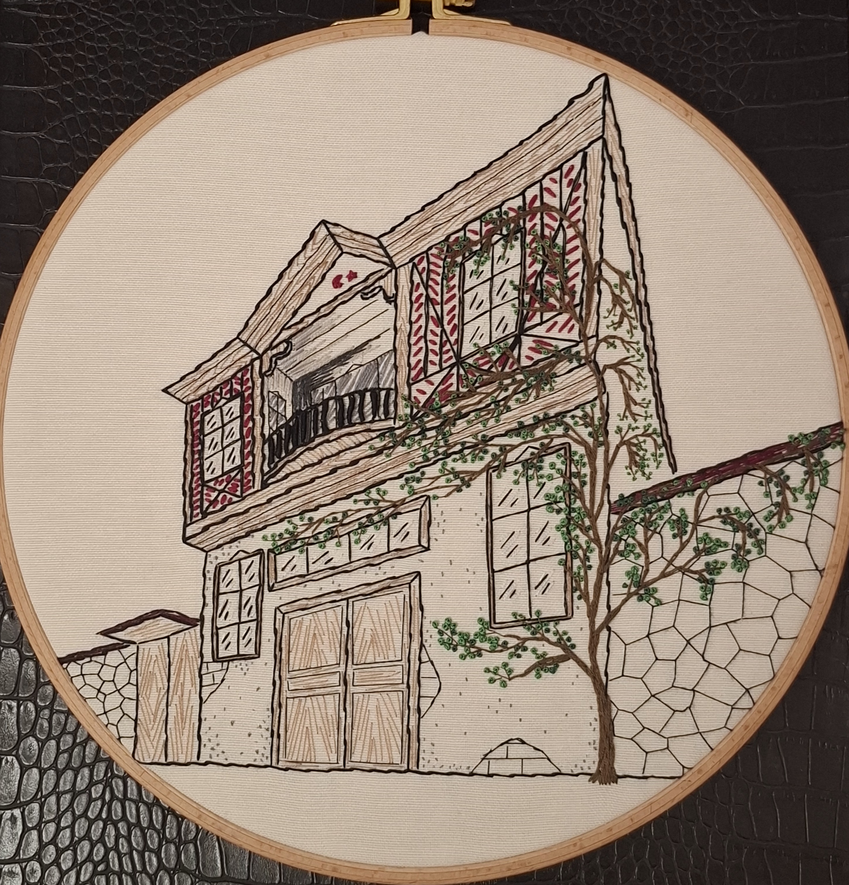 "Mekânın Hafızası, İpliğin Dokunuşu" - Tekstil üzerine el nakışlı ahşap pano - 29,4 cm - 2026