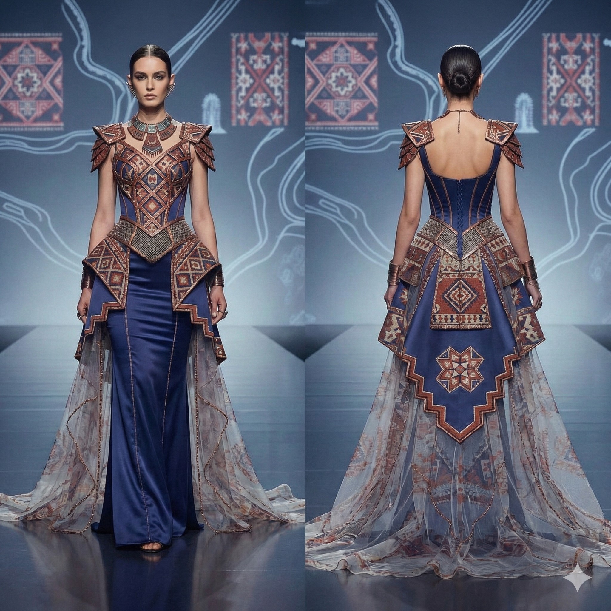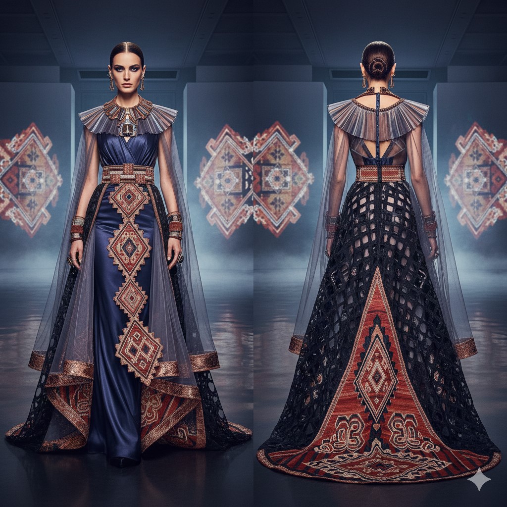 "Kilim Palimpsesti" - AI Tabanlı üretken görsel tasarım + dijital kolaj/düzenleme; yüksek moda editorial diptych kompozisyonu. - 1024 px - 2026