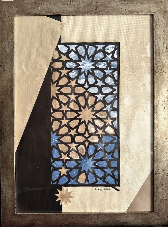 "Deruni Yıldız" - Ebru, Kat-ı Tekniği - 30x40 cm - 2022